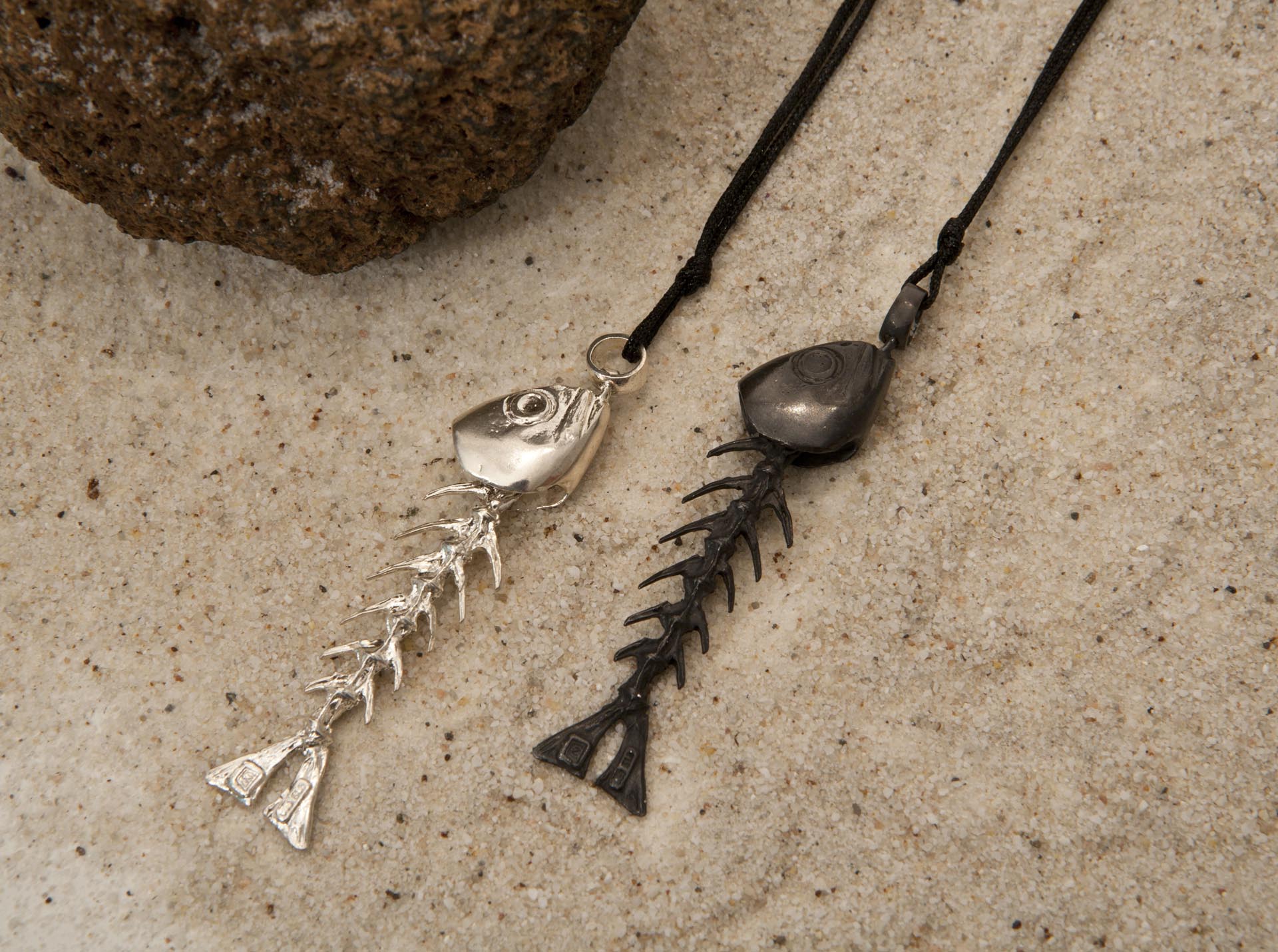 Title: Silver fishbone pendantsMedium: Sterling & oxidized silver